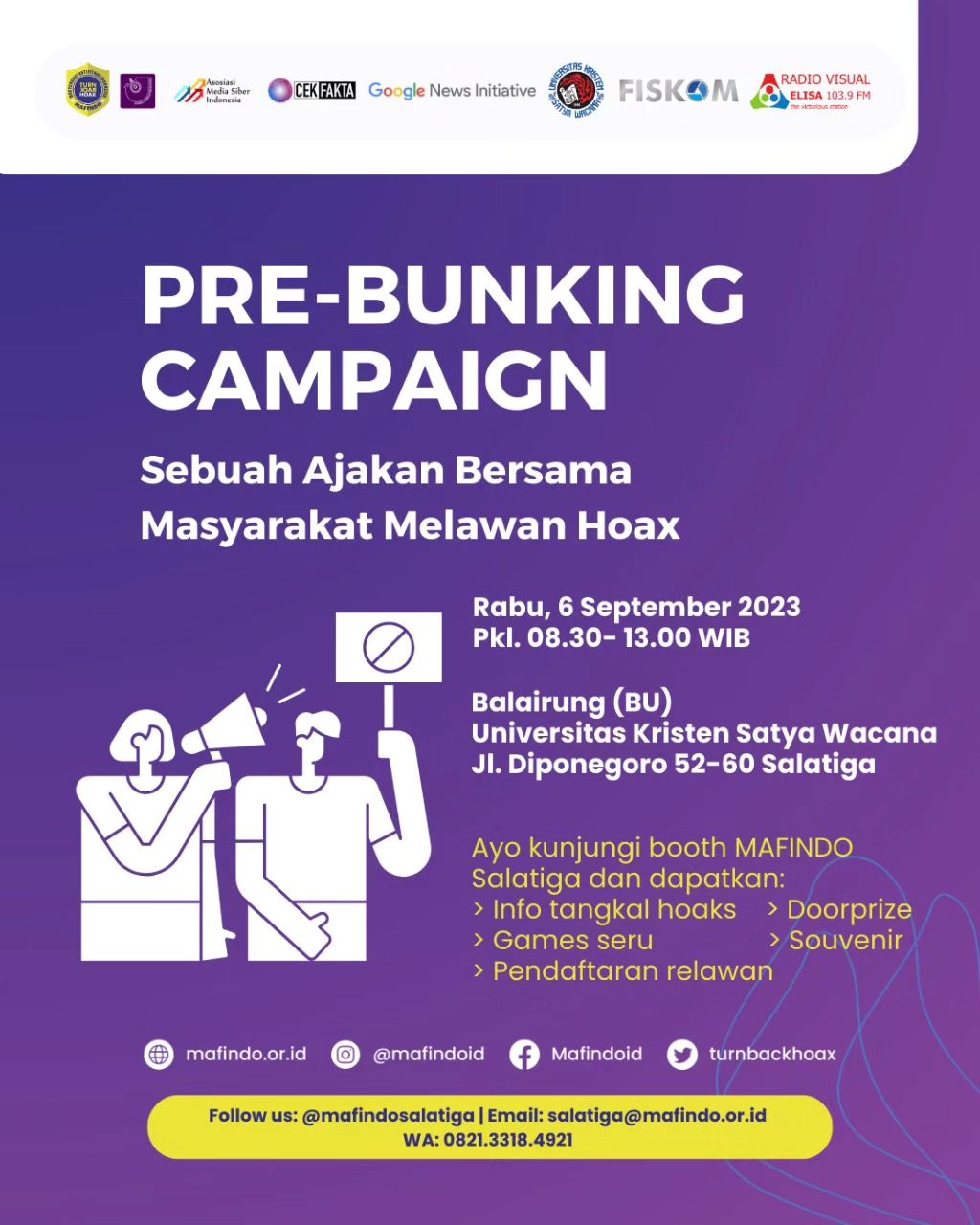 Hai, Creative Minority!Prebunking Campaign MAFINDO goes to UKSW Salatiga!Program Cek Fakta Mafindo akan melaksanakan kegiatan kampanye prebunking di 40 titik wilayah Indonesia. Kegiatan ini dilaksanakan ...